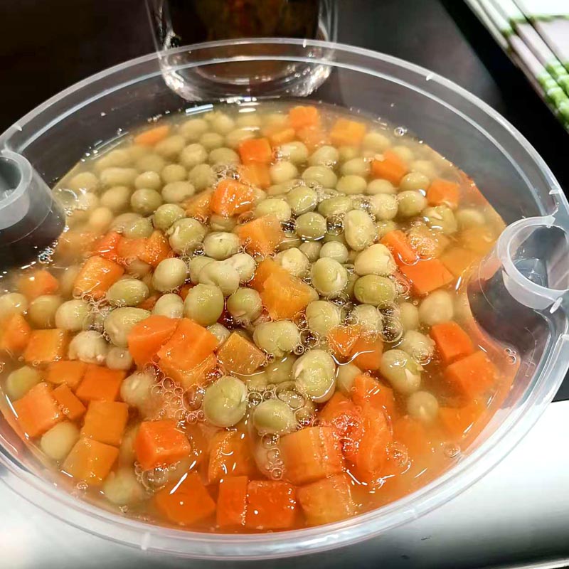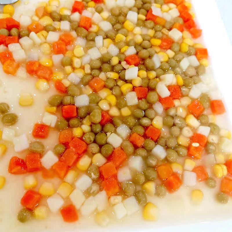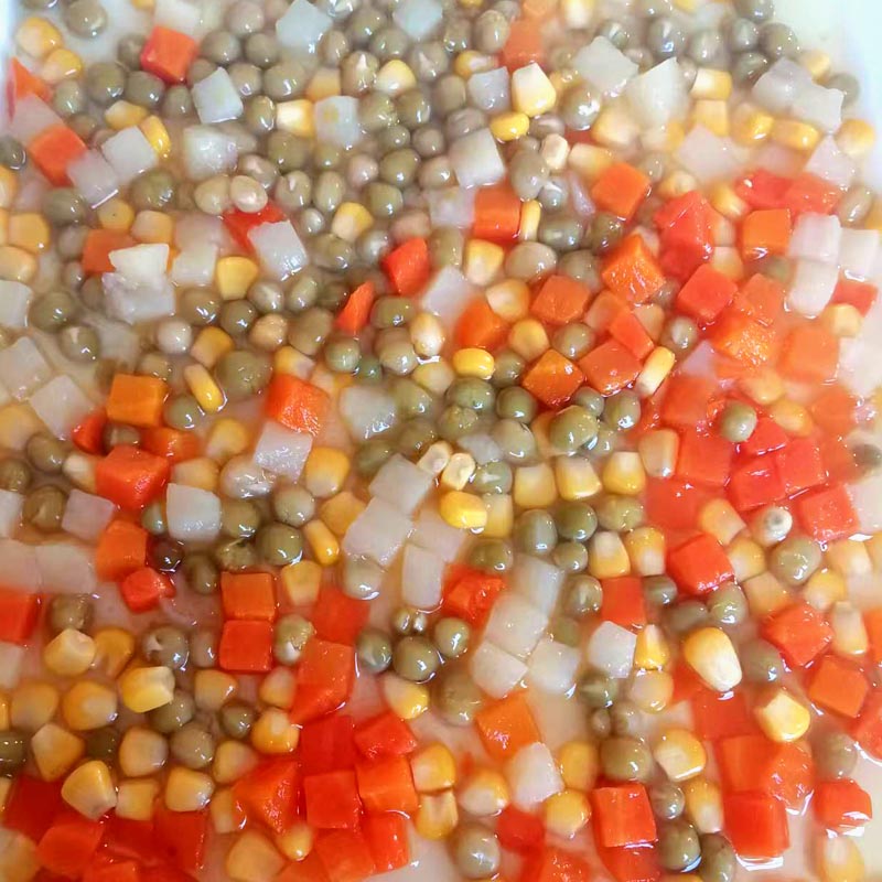 | Ingredientes | Guisantes verdes, zanahorias, granos de maíz dulce, patatas, judías verdes, etc. (Personalizable) |